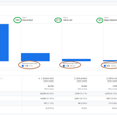Une fois les problèmes de fin de parcours identifiés, analysez les abandons les plus importants dans les étapes précédentes.
