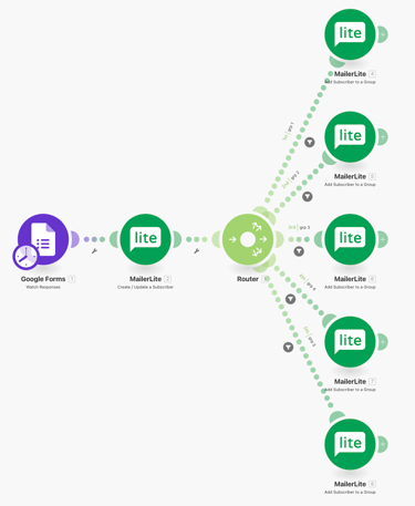 Ensuite tu as mis en place une automatisation qui classe mes prospects sur MailerLite (outil d'email marketing) et leur envoie une séquence email spécifique en fonction de leur réponse au formulaire.